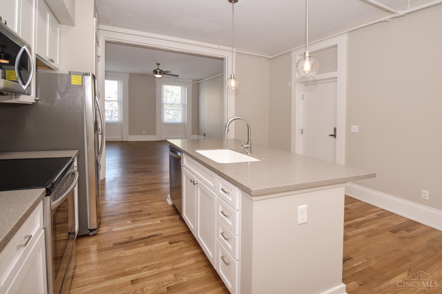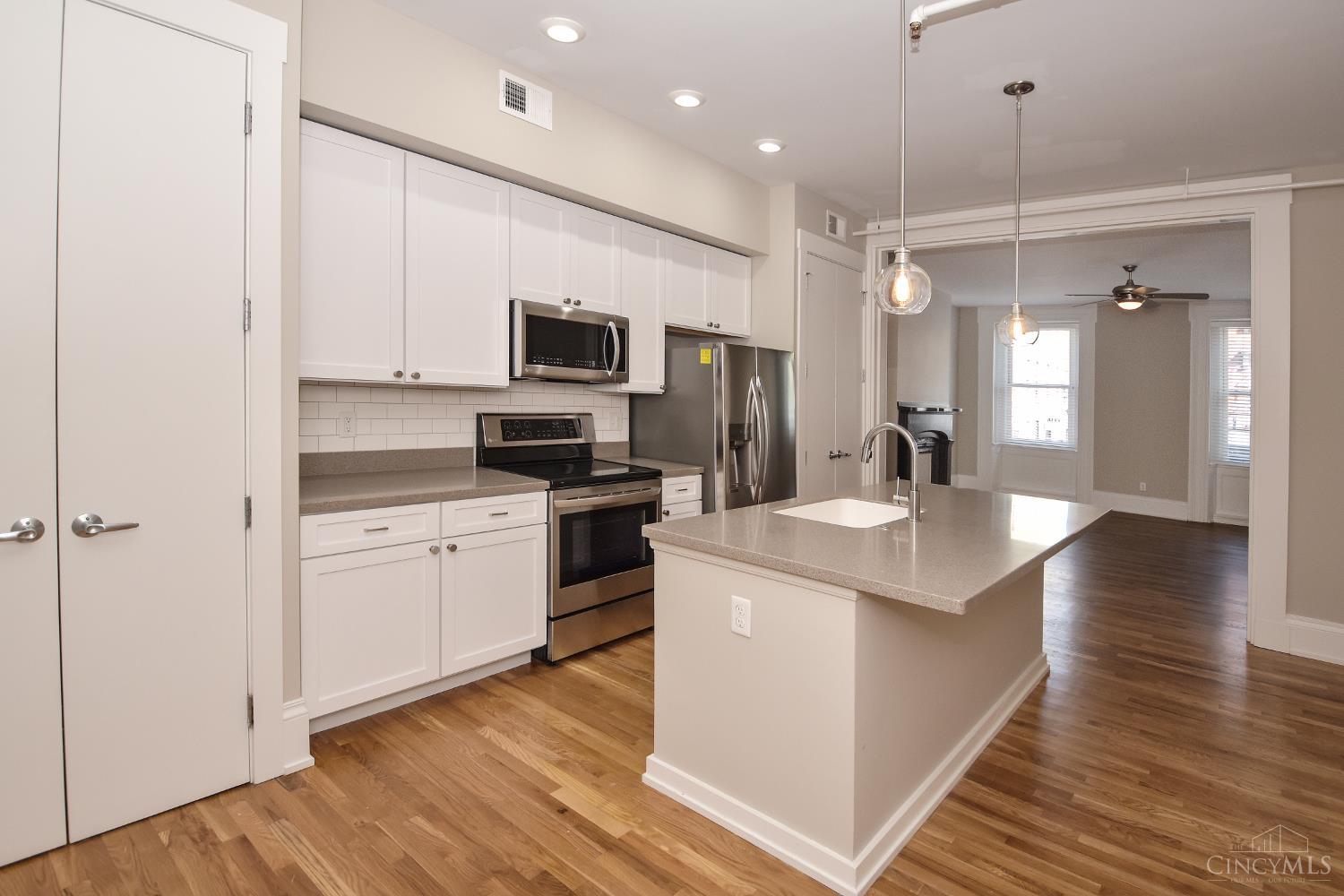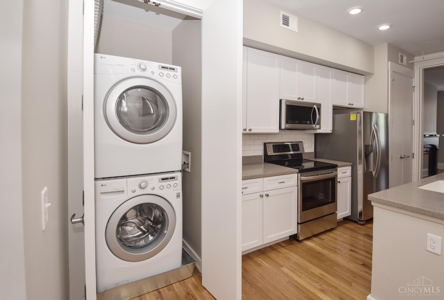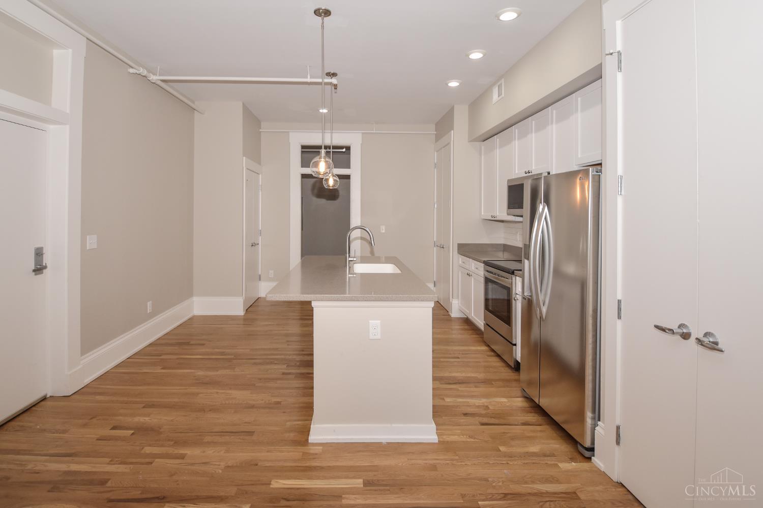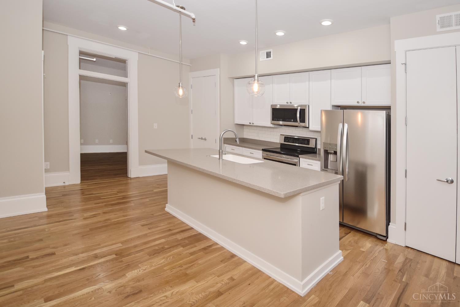 Immaculate. Stunning. Vacant. Short Term Rental Approved. Chic Condo in the Heart of OTR! Spacious rooms, open floor plan and soaring ceilings! Flexible floor plan. Large study-or-dining room-or-tv room-or-creative 2nd bedroom option. Hardwood floors throughout! Chef's kitchen with oversized island and pantry! Private balcony off the primary suite for romantic moments/outdoor enjoyment. Feels very European. Entertainment galore with many of the City's finest dining options (Losanti, Pepp & Dolores, Colette and many more) just outside the door plus: Findlay Market, Music Hall, Washington Park, TQL Stadium, numerous Theatres, specialty Boutiques, pubs & clubs like The Lackman, Ghost Baby and Japp's, all within the neighborhood! Building has its own paved cobblestone Private Courtyard with grilling area. Washer/dryer comes with unit. Professionally managed with low HOA fees. You will not find a more charming, fun and ideal spot in the City!