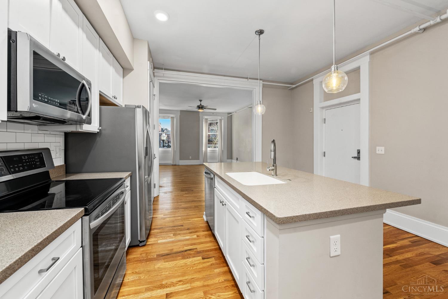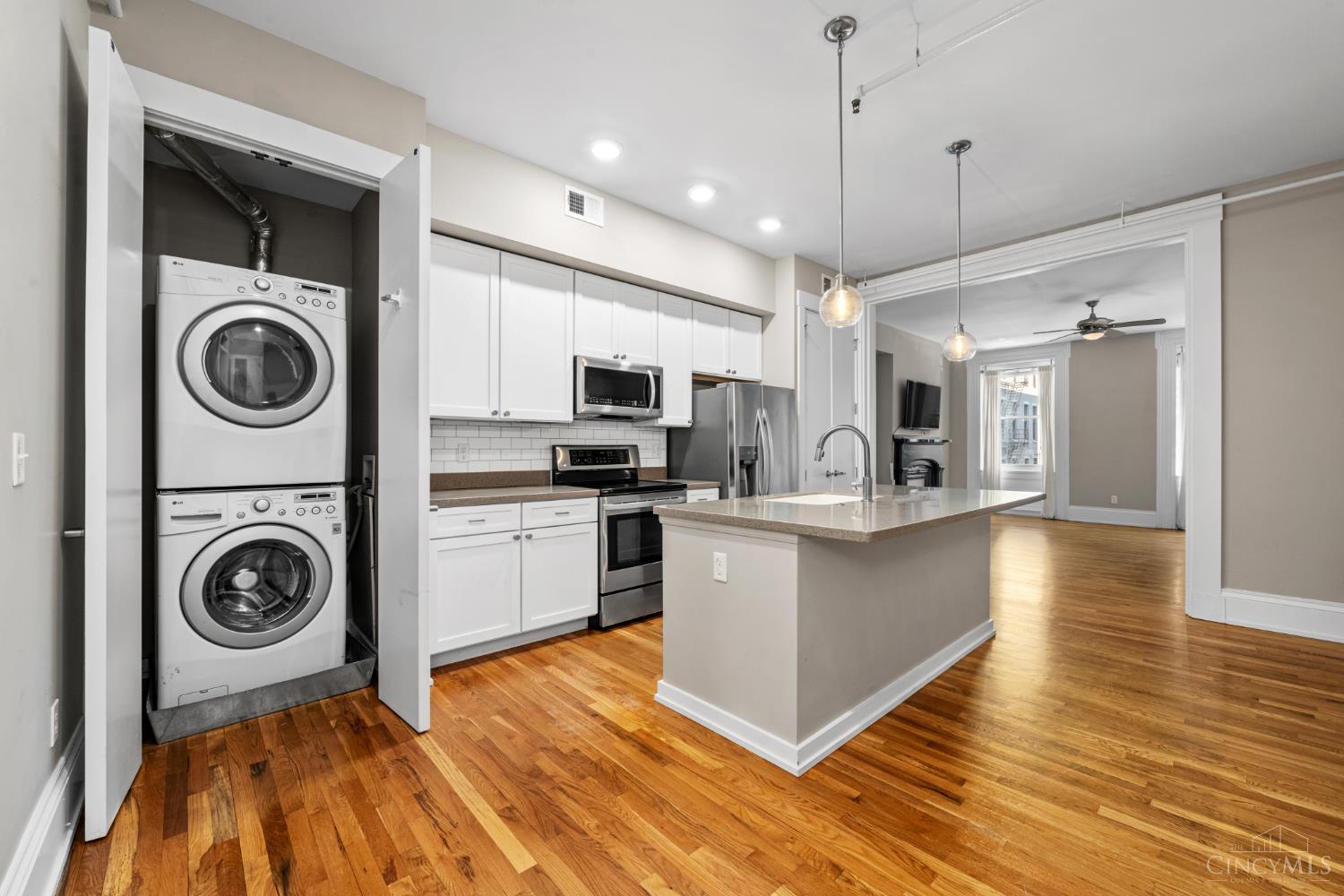 Immaculate. Stunning. Vacant. Short Term Rental Approved. Chic Condo in the Heart of OTR! Spacious rooms, open floor plan and soaring ceilings! Flexible floor plan. Large study-or-dining room-or-tv room-or-creative 2nd bedroom option. Hardwood floors throughout! Chef's kitchen with oversized island and pantry! Private balcony off the primary suite for romantic moments/outdoor enjoyment. Feels very European. Entertainment galore with many of the City's finest dining options (Losanti, Pepp & Dolores, Colette and many more) just outside the door plus: Findlay Market, Music Hall, Washington Park, TQL Stadium, numerous Theatres, specialty Boutiques, pubs & clubs like The Lackman, Ghost Baby and Japp's, all within the neighborhood! Building has its own paved cobblestone Private Courtyard with grilling area. Washer/dryer comes with unit. Professionally managed with low HOA fees. You will not find a more charming, fun and ideal spot in the City!