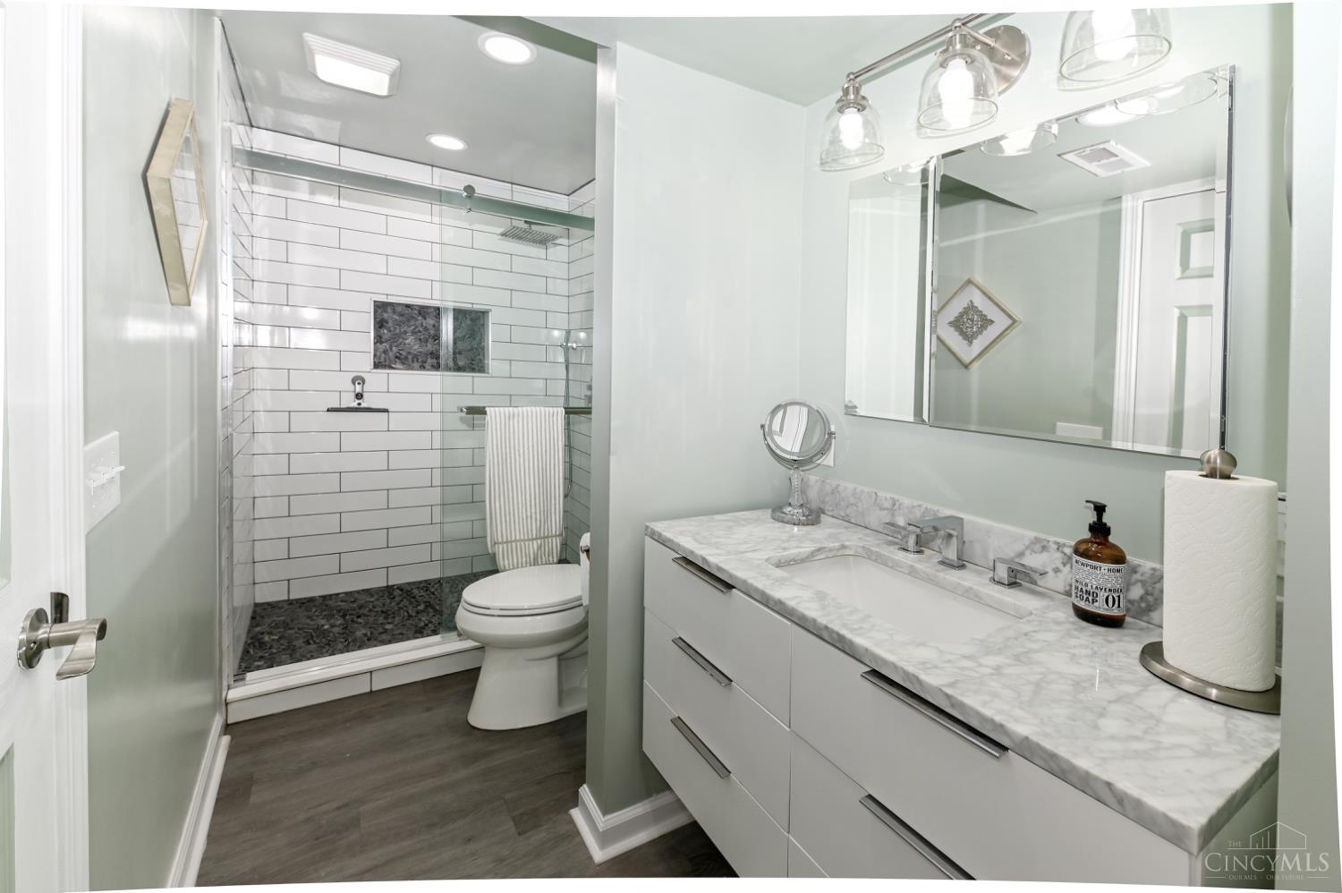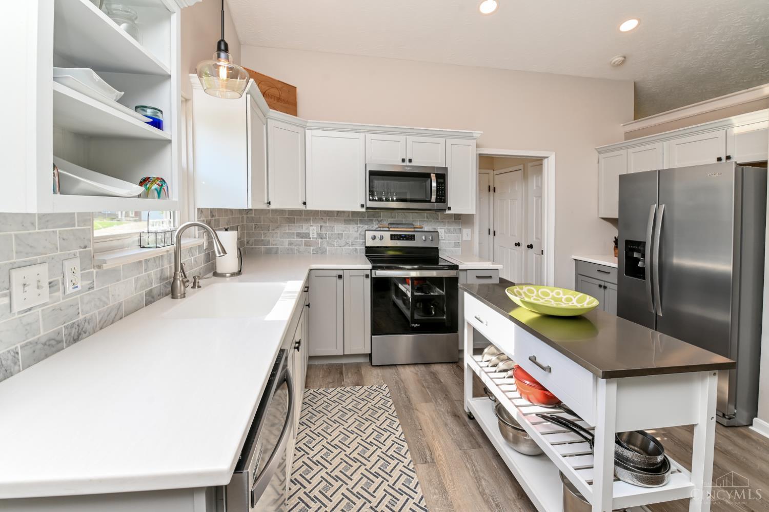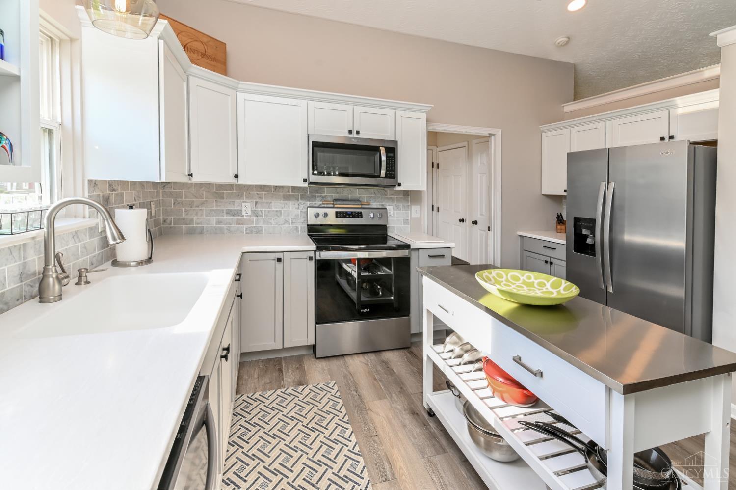 Immaculate & beautiful ranch that has been completely remodeled in Whispering Tree's! 1708 first floor + 1198 lower level = approx 2906 finished living sq ft! Newly redone: exterior siding, landscaping, interior/exterior paint, flooring, chef's kitchen with stainless steel appliances & solid surface counters with farm sink, & stylish cabinets, & lighting! Gorgeous finished lower level with a new full bath & walk-in closet, it is open and bright! Flex room opens to a spacious deck & fenced flat rear yard. Amazing plan for multi-generational living, incredible entertaining space, and easy one floor living! 2 car garage. 1st floor laundry! This plan is: THE CABOT II Quality Built by HB HOME BUILDERS. Garage wall shelves excluded.