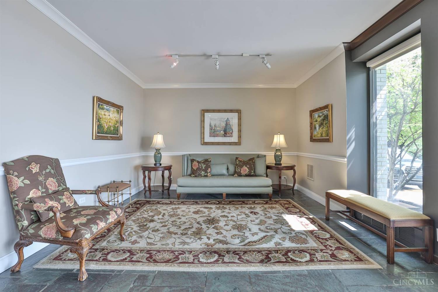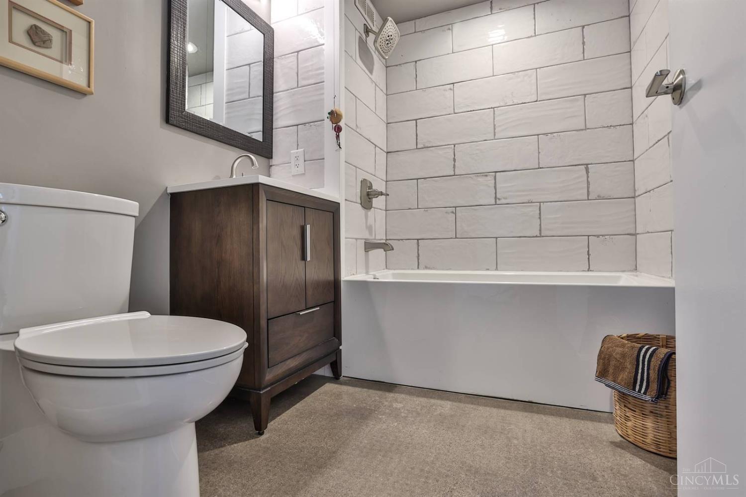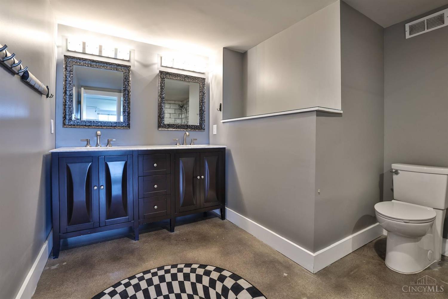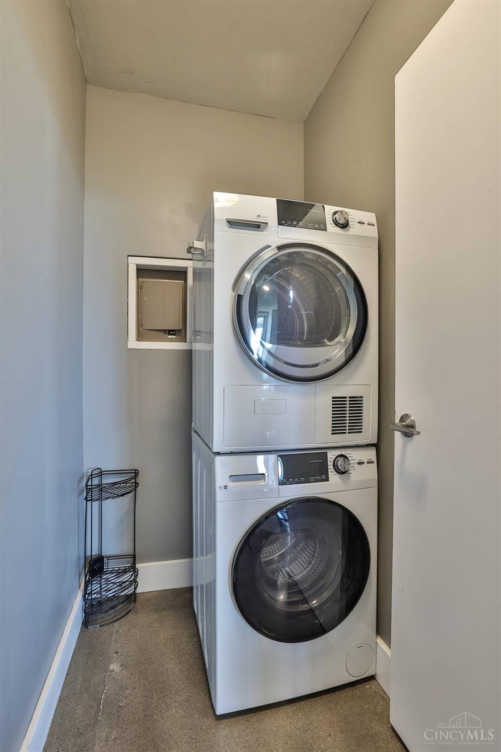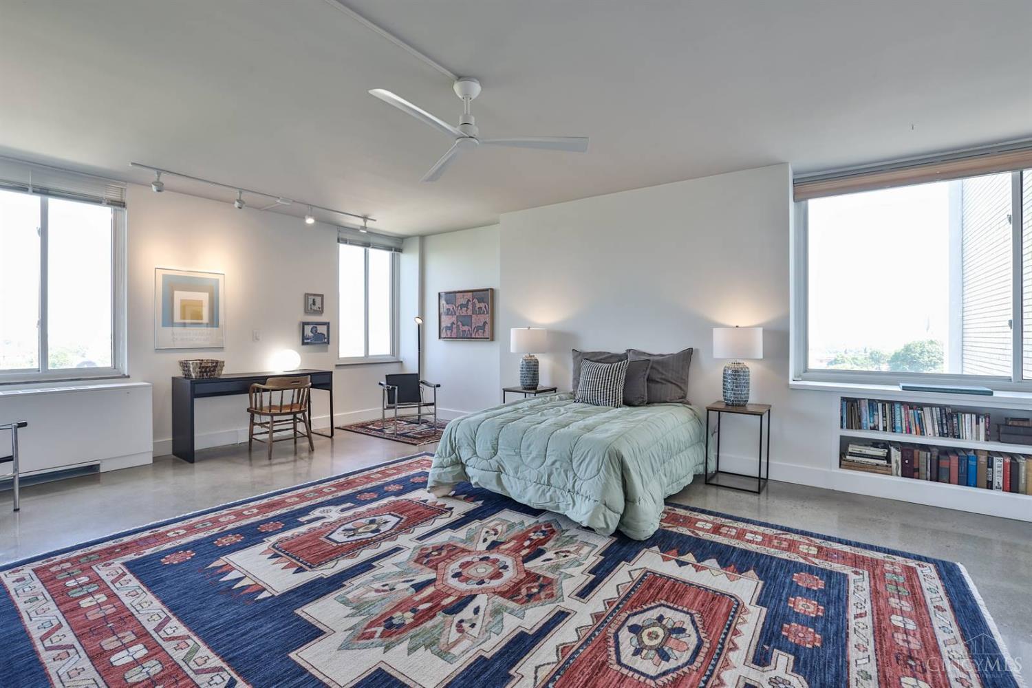Enjoy breathtaking sunsets over the city skyline and the Ohio River from this updated 10th-floor condo in the iconic River Terrace. Full-service building with 24-hour concierge. Open-concept layout with polished concrete floors, stylish soapstone kitchen countertops, custom cabinetry, tasteful backsplash, stainless appliances, and breakfast bar. Primary suite has custom walk-in closet, second closet, built-ins, updated ensuite with large shower and dual sinks. Updated second bath, in-unit laundry. All HVAC units have been replaced within the past 3 years. Large windows and private covered balcony flood the home with natural light and offer spectacular river & city views-ideal for fireworks. Contemporary ceilings fans throughout. HOA covers 1 garage & 1 off-street parking spot, 24-hour security, valet parking, heat, A/C, water, cable, internet, fitness center, and community room. Large storage space included. 10-year CRA tax abatement in place until 2029.