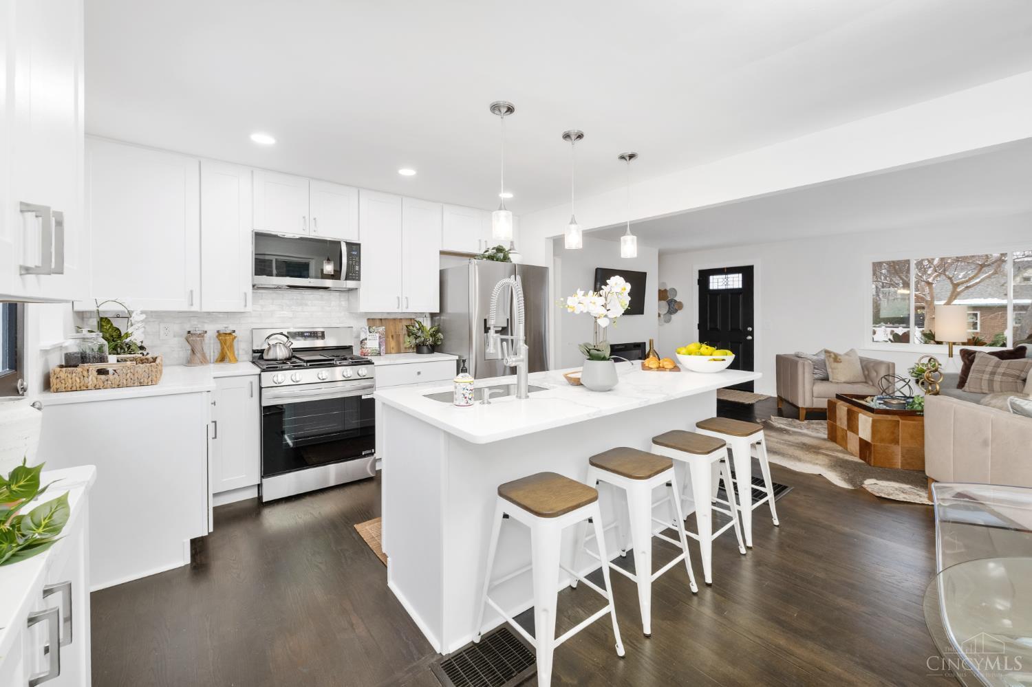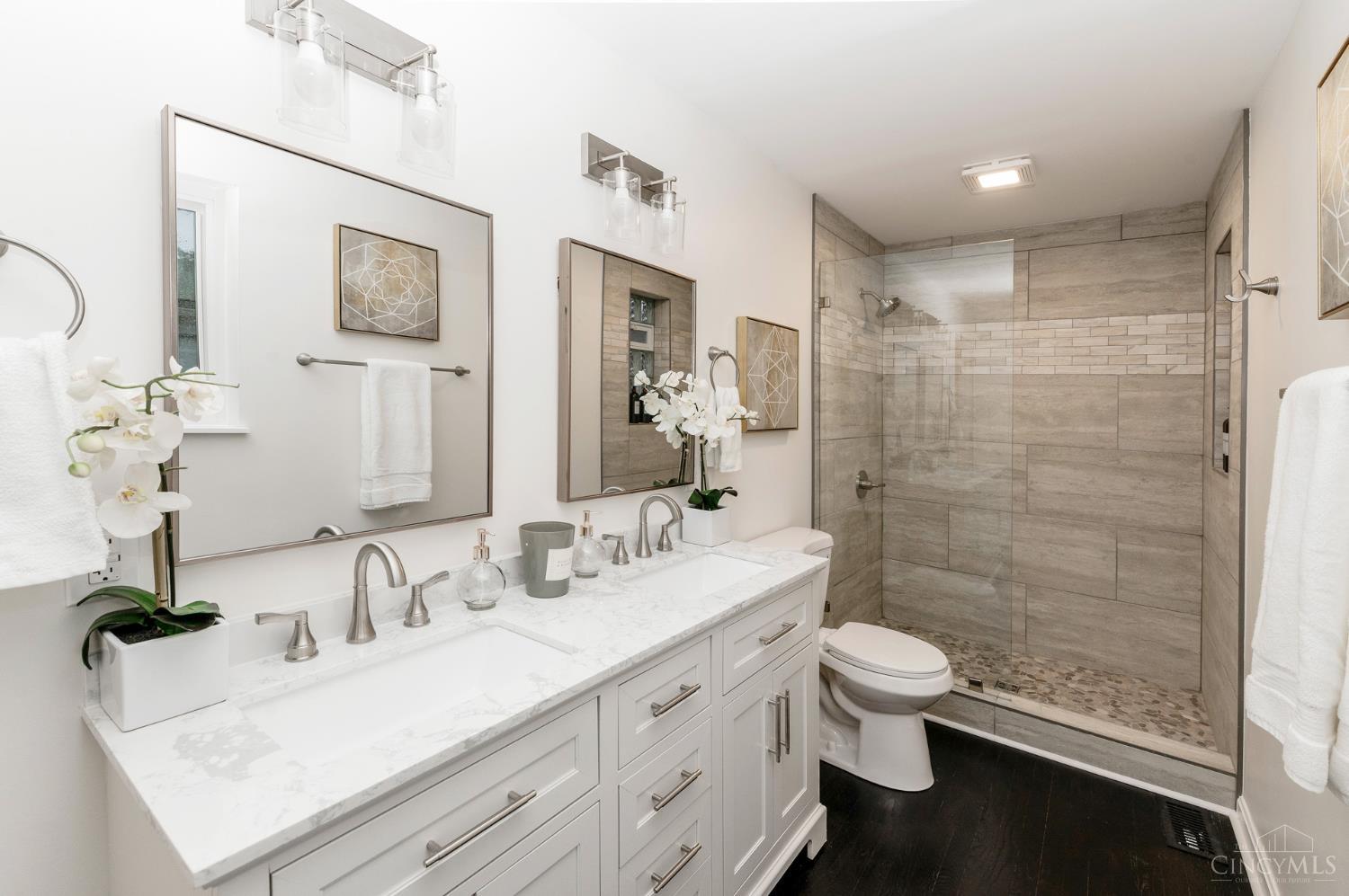 Gorgeous 2025 Renovation w/approx 2500 fin'd sq ft! 4 beds/3 baths/3 garages/3 FP's! Gourmet chef's kitchen w/gas stove/quartz counter tops/undermount sink/& island bar! Back yard access to Wasson Trl! 1st flr primary w/full bath, dressing area,& 2 closets! New:windows, int-ext paint, 2.5 baths, custom kitchen, hardwood floors added & redone, designer carpet w/ specialty runner on staircase, Lux Vinyl Tile in LL, dry bar w/beverage refrigerator in LL, all lighting, all landscaping, garage doors replaced, replaced concrete front walk, custom deck, wood burning firepit, 2 interior fireplaces with color options and blowers, HVAC system, water heater, custom window boxes-planted by WOW with matching shutters & number plate, see attached contractor list. Cul-de-sac street! Generous storage thruout! Detached garage awesome for addtl cars, workshop, and fun recreation space especially for yard parties with deck and firepit! Neighbor's house is being professionally renovated to sell by spring.