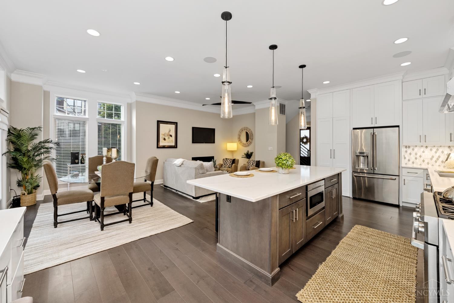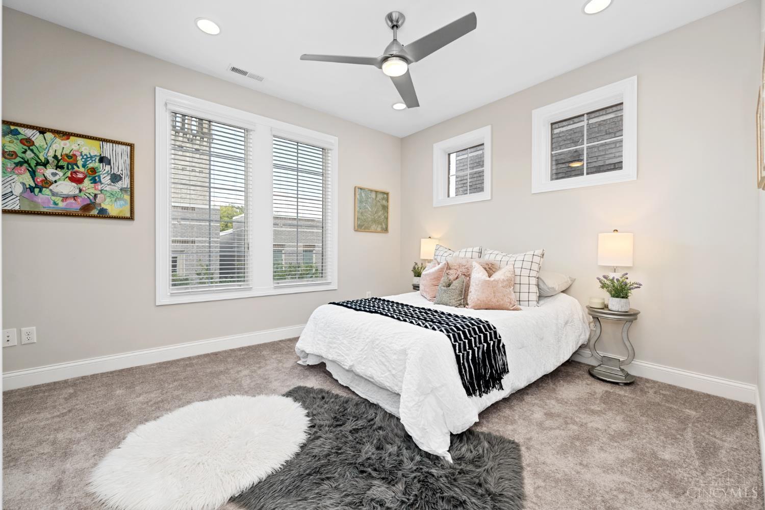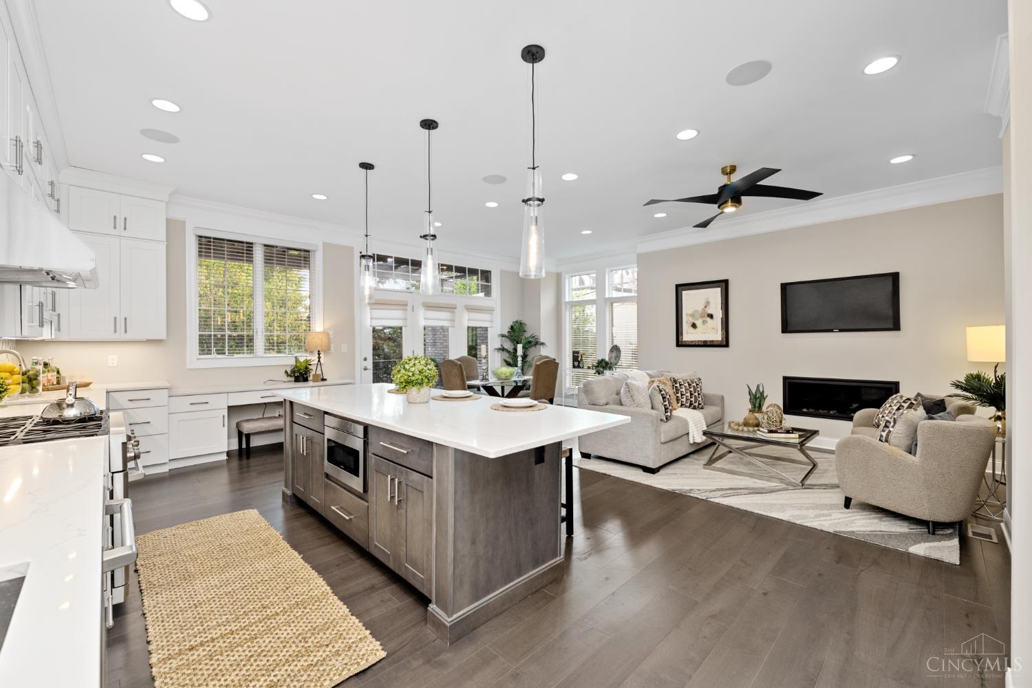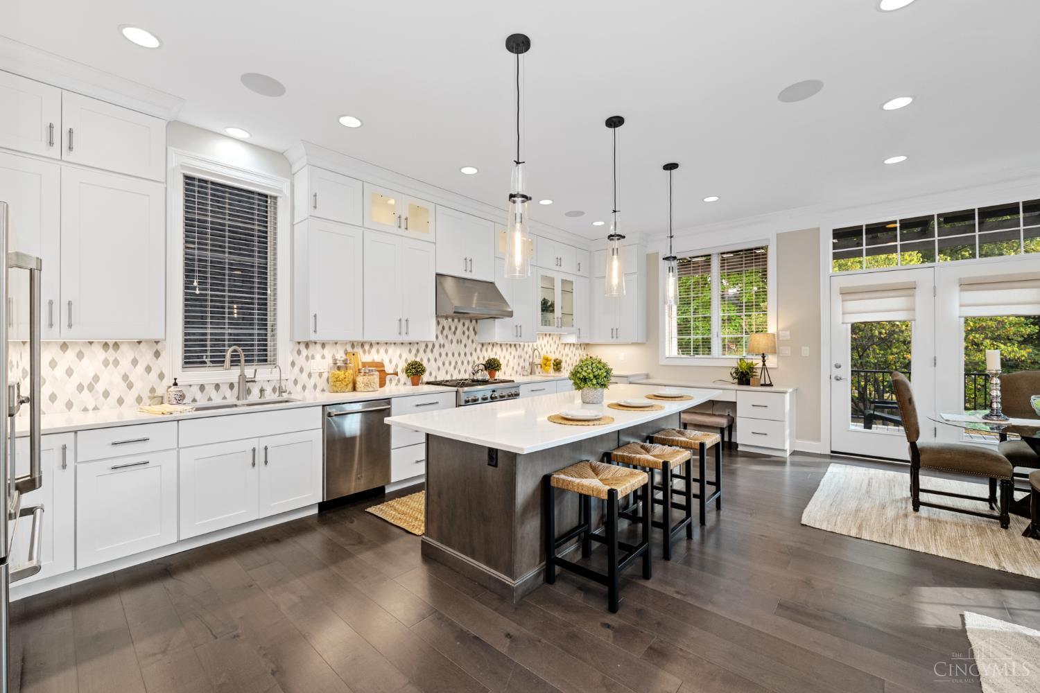 House Beautiful! This is a 3-story gem in the coveted Sanctuary Court of Walnut Hills! Enjoy the lush, shared courtyard & firepit, views of the historic bell tower, plus a $400K LEED Silver tax abatement through 2034! Close proximity to all of O'Bryonville and Woodburn Districts for shopping, eateries, pubs, and culture! This home also offers soaring 10-ftnceilings which accentuate the open-concept design. A chef's kitchen with quartz counters, oversized island, walk-in pantry, wet bar & floor-to-ceiling cabinetry flows seamlessly to the living room with gas fireplace and dining space that opens to a large treetop deckperfect for entertaining! Generous Study with custom built-ins + powder room complete this level! The primary suite has dual oversized & custom closets, plus a skylit spa bath! There is a 2nd ensuite bedroom including a walk-in closet. Walkout LL offers a spacious 3rd ensuite bedroom & access to the 2-car garage with EV charging outlets.