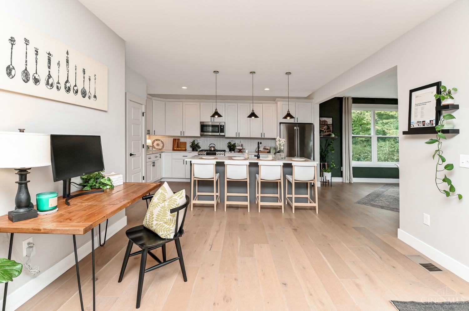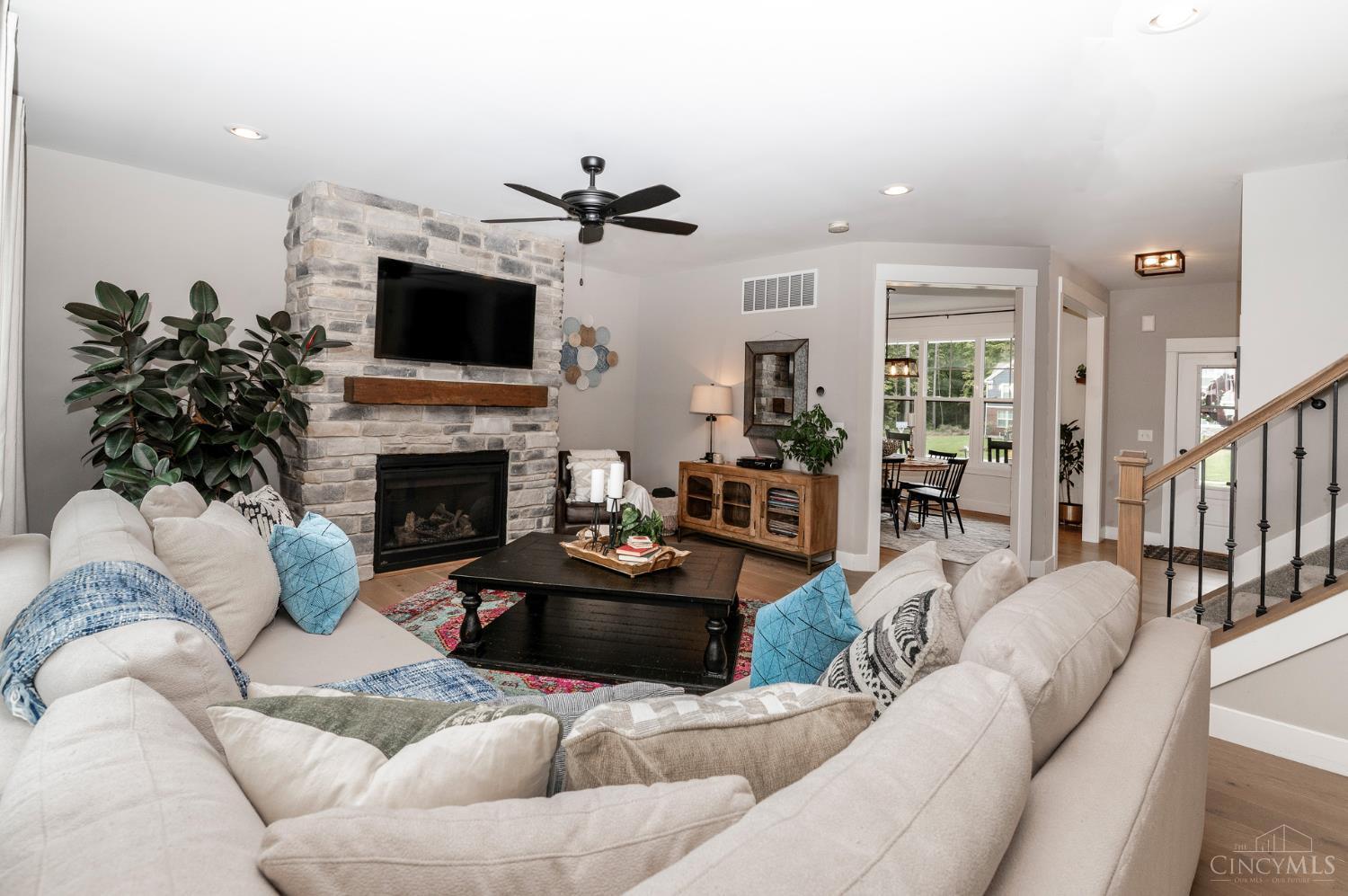 Built in 2021, this 4-bedroom, 2.5-bath beauty shows like a model home! 1st floor features stunning light-toned hardwood floors and open-concept kitchen and living area. Kitchen equipped with premium GE Caf appliances and opens to a bright, light-filled sunroom. Relax in the living room beside the floor-to-ceiling stone gas fireplace or step out onto the back deck overlooking a fenced-in backyard with views of 11 acres of protected landlasting privacy with no neighbors behind you. Spacious primary suite features a walk-in closet and luxurious en-suite bath complete with dual sinks, a large walk-in shower, and bench-style seating. Laundry Room conveniently located on 2nd floor. The walk-out basement is ready for your personal touch, offering 9' ceilings, rough-ins for a future bathroom, and NuDura(r) insulated concrete walls that keep the space warm in winter, cool in summer, and energy-efficient year-round.