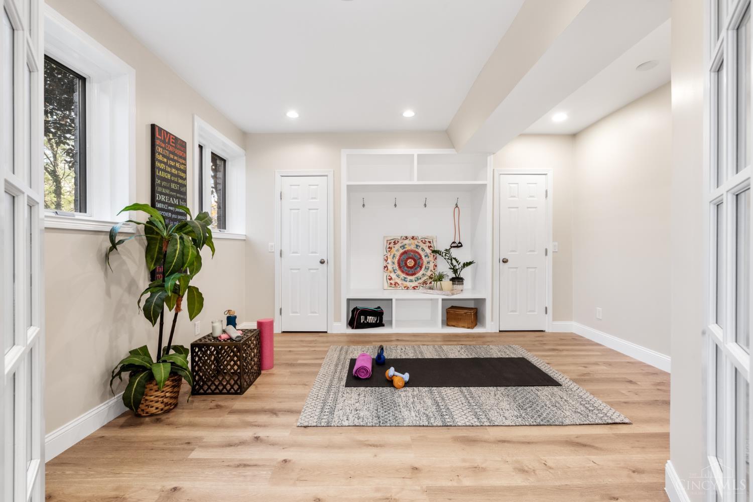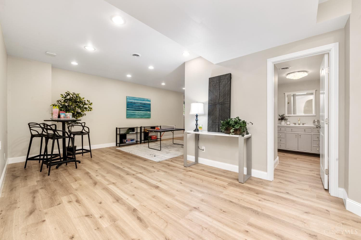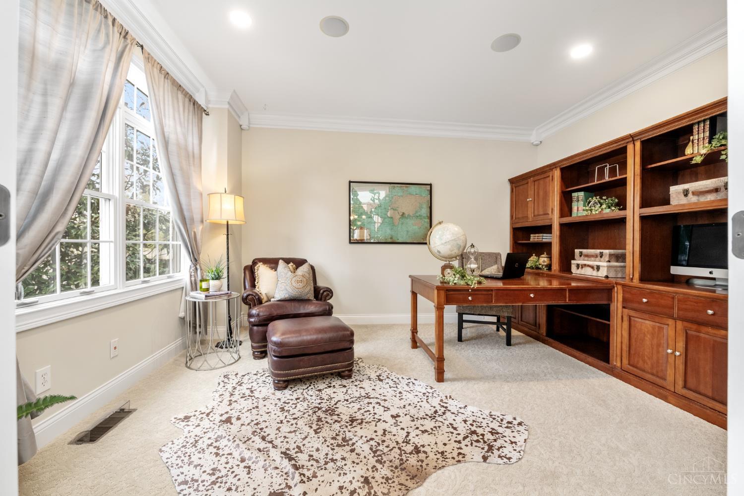 Exceptionally beautiful brick 2-story in Indian Hill School District! Gorgeous parklike yard at the end of a private lane on coveted Kugler Mill Road. Elegantly updated 5-6+ bdrms, 5 baths, w/ a chef-inspired kitchen, hearth room and open floor plan ideal for entertaining. The perfect combination of upscale style and everyday comfort! 1st floor bdrm w/ full bath could be used as guest room, in-law or au pair accommodations. Formal dining room with wainscoting and stunning millwork throughout! Stainless steel appliances and double oven! French doors leading to a quiet 1st floor study complete with desk and bookcases. Huge primary suite with spa-like bath including a large shower with built-in tiled bench and corner soaking tub. Separate vanities too. 2nd level bonus rm can be used as a bedrm or flex space. Gorgeous hardwood floors! Finished lwr level with entertainment areas including theater, craft room, and wet bar! Plus, huge storage space. 3 car oversized garage. Immediate occupancy