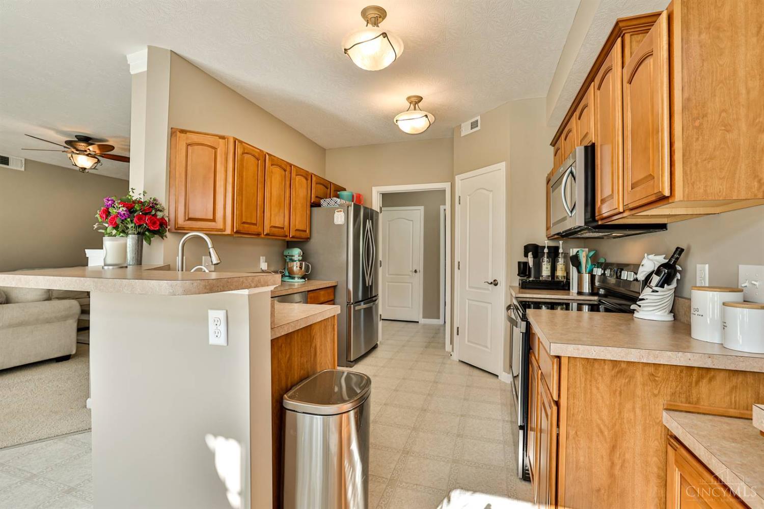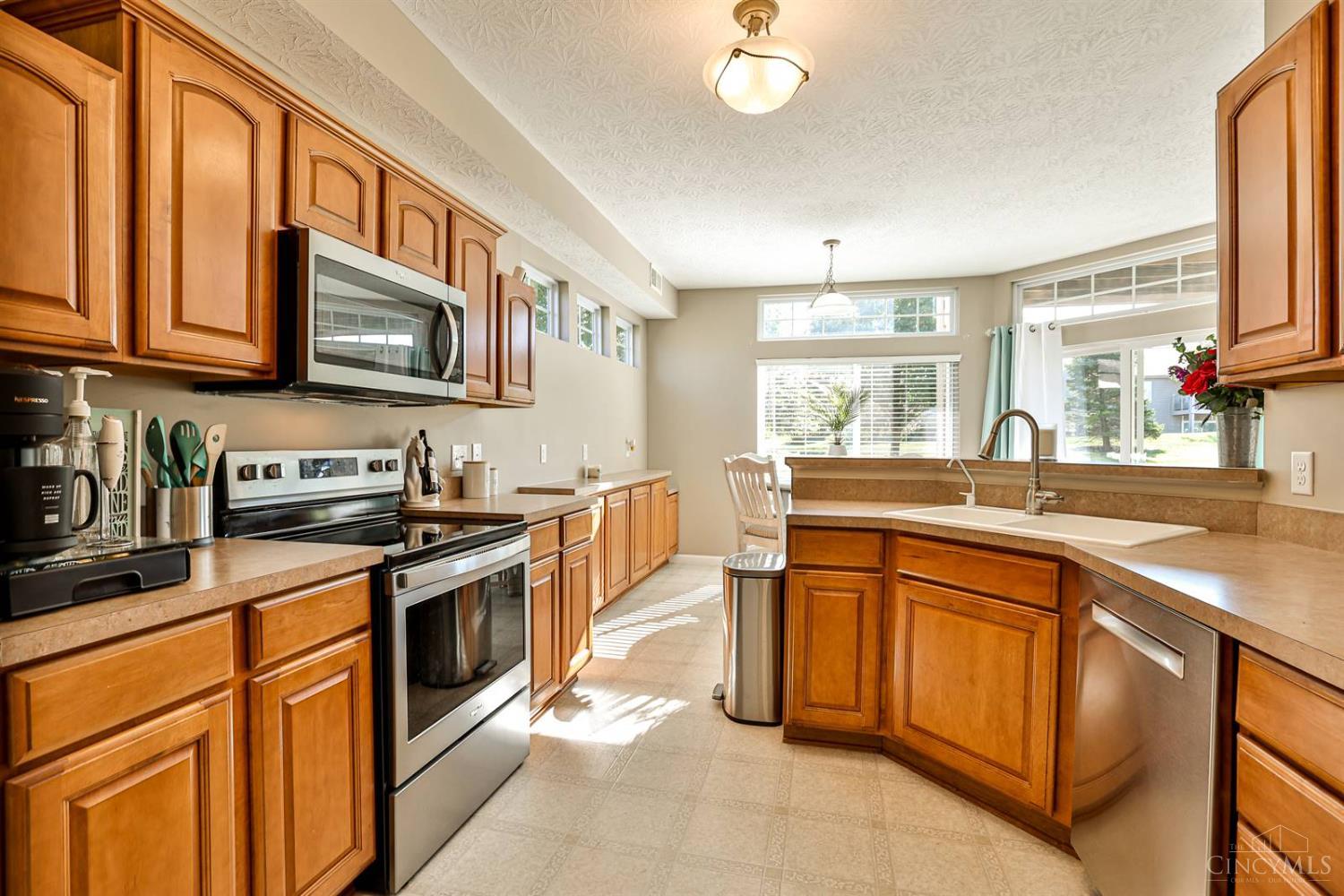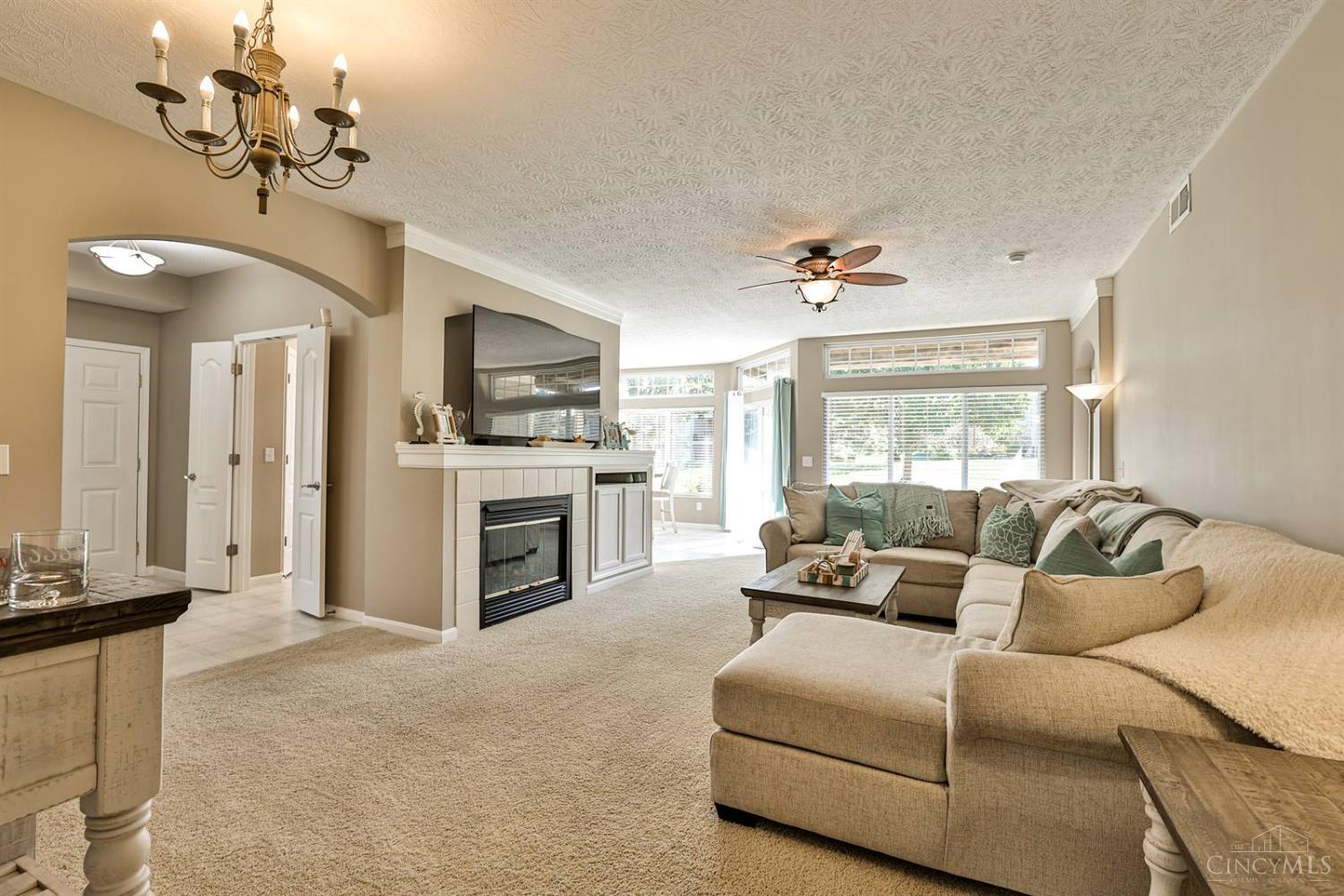 Spacious first-floor condo in the highly desirable Adena at Miami Bluffs community. This end-unit home offers the convenience of no steps and features soaring 10' ceilings throughout. The study includes custom built-in shelving, while the large great room with fireplace creates a warm and inviting gathering space. The kitchen is designed for both style and function with stainless steel appliances, a counter bar, and extended cabinetry flowing into the breakfast nook. The primary suite boasts a walk-in closet and a spa-like bath with soaking tub, dual vanity, and generous storage. Additional highlights include a two-car garage and access to community amenities such as a pool, playground, fitness center, tennis courts, and direct access to the scenic bike path. A fantastic opportunity in a prime location!