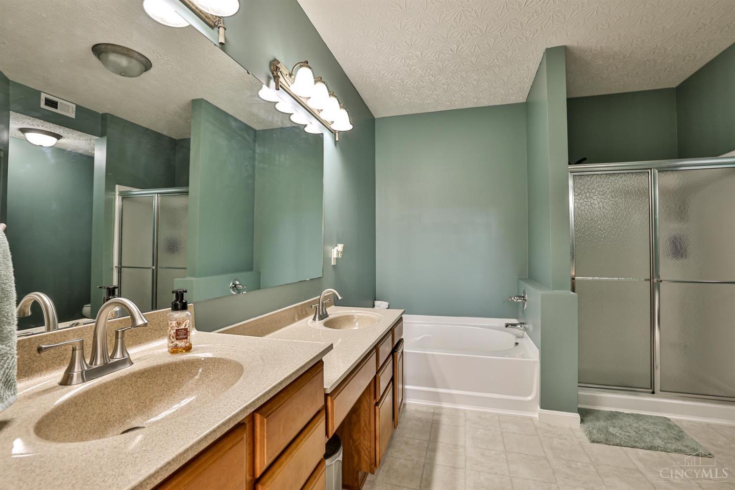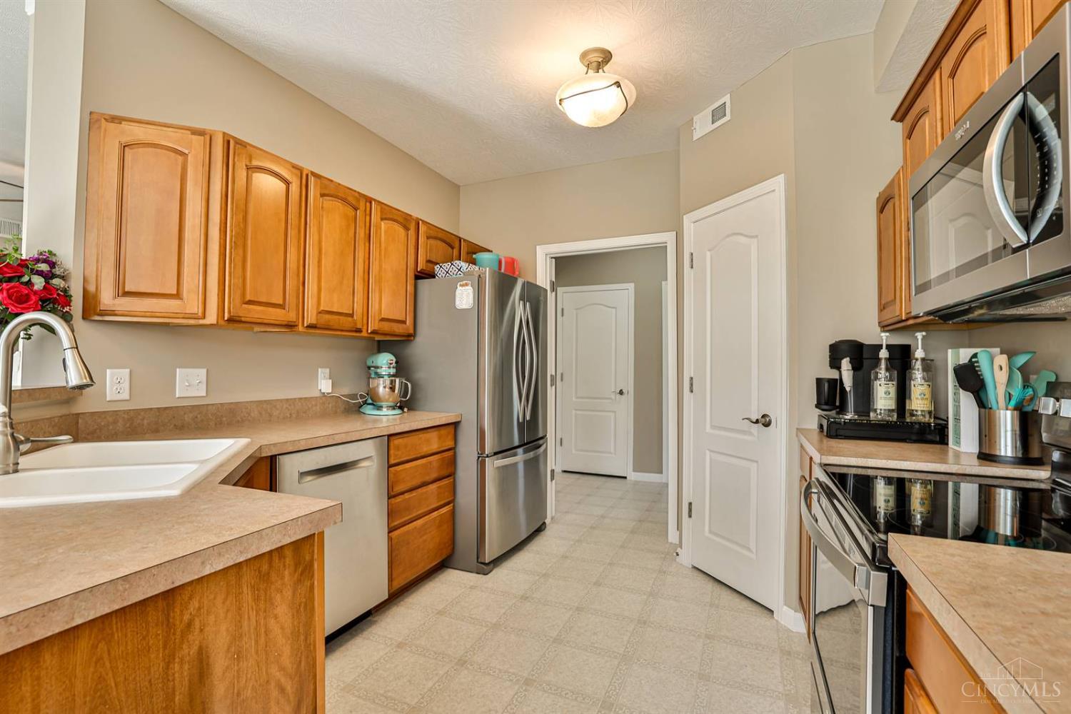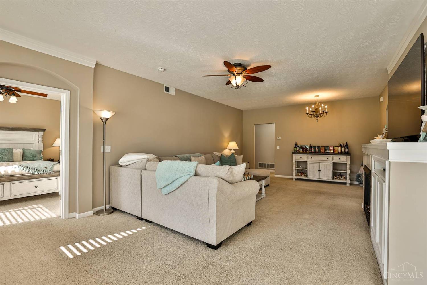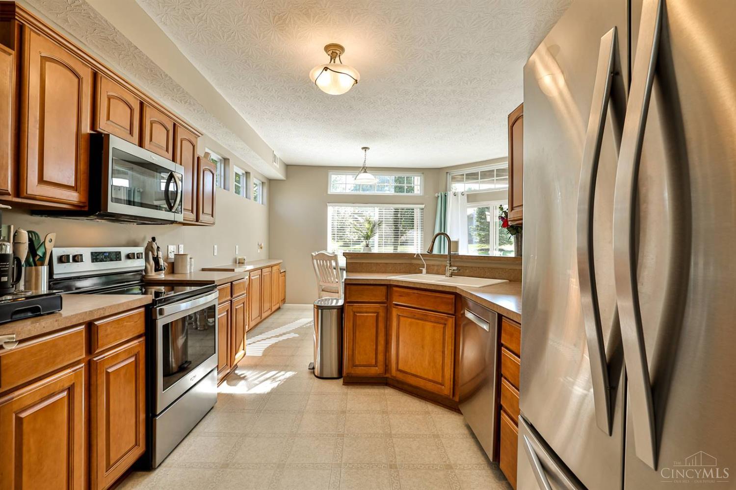 Spacious first-floor condo in the highly desirable Adena at Miami Bluffs community. This end-unit home offers the convenience of no steps and features soaring 10' ceilings throughout. The study includes custom built-in shelving, while the large great room with fireplace creates a warm and inviting gathering space. The kitchen is designed for both style and function with stainless steel appliances, a counter bar, and extended cabinetry flowing into the breakfast nook. The primary suite boasts a walk-in closet and a spa-like bath with soaking tub, dual vanity, and generous storage. Additional highlights include a two-car garage and access to community amenities such as a pool, playground, fitness center, tennis courts, and direct access to the scenic bike path. A fantastic opportunity in a prime location!